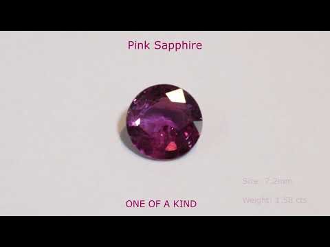 Delicious color in this natural pink sapphire. A faceted round, this precious gemmeasures 7.2mm and weighs 1.58 cts. Fine cutting.