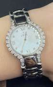 TURN HEADS WITH THIS DAZZLING FEMALE WATCH, EBEL BELUGA WITH WHITE FACE AND DIAMOND BEZEL. IN THE STAINLESS STEEL CASE AND BRACELET. DIAMOND BEZEL AND SYNETHIC SAPPHIRE CRYSTAL. MOTHER OF PEARL DIAL, WITH SWISS MOVEMENT.