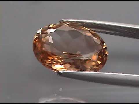 This gorgeous topaz features an excellent mix of aged champagne and warm amber hues with fiery wide stroke flashing that runs along its well cut facets. Its pristine eye clarity is covered by its superior luster. This lovely piece was sourced from Brazil and measures 12.8mm x 9.5mm x 5.5mm.
