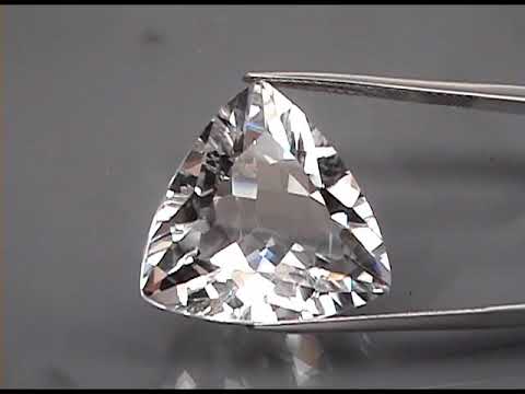 Look at this amazing piece. Cut from pure AAA quartz, it exhibits a flawless diamond white hue that shines through its great clarity. It was precision faceted resulting in crisp and vibrant flashing, and displays an intricate trillion cut. Measuring 20.2mm x 20.2mm x 10.8mm, it has incredible size and a Mohs hardness rating of 7 out of 10. Source from Brazil. Untreated.