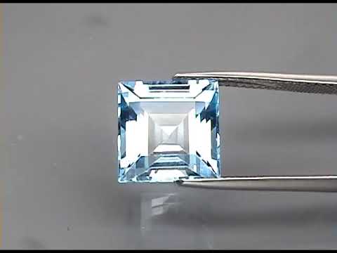 This sky blue topaz has brilliant linear flashing that is accented by its glistening luster and amazing eye clarity! It measures an impressive 11mm x 11mm x 7.3mm, and has a Mohs hardness rating of 8 out of 10 making it perfect for setting. Sourced from Brazil.
