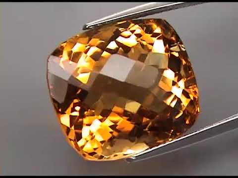 The wide checkerboard cut top of this citrine combined with its superior luster creates a dazzling array of glistening focal points accented by its underlying flashing. It has a rich golden hue with vivid saturation, and will standout in any setting or collection. It measures 15.6mm x 14mm x 12.3mm, and was sourced from Brazil. Unheated.