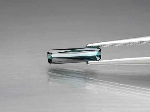 This superb natural indicolite tourmaline exhibits full color saturation with a dark tone, silky luster, and rich london blue hue through pristine VS clarity. The combination of its elongated scissor cut and arrow straight faceting makes this gemstone a natural choice for an elegant setting. It measures an impressive 12.4mm x 3.5mm x 3mm, and is unheated. Sourced from Mozambique.