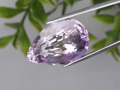 The color of this pristine gemstone is gentle and understated yet vibrant, exhibiting a violet pink hue through VS clarity. It has a fantastic pear cut with a wide open table framed by glittering flashing with a glistening luster. This gorgeous amethyst measures an impressive 27mm x 17.8mm x 15.4mm, and is untreated. Sourced from Brazil.