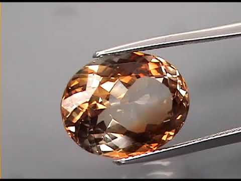 The hue of this topaz shifts through ambers and champagnes with touches of gold, complimented by high fire flashing and beautiful eye clarity. It has a shimmering superior luster, and measures 14.8mm x 11.5mm x 7.8mm. Sourced from Brazil.