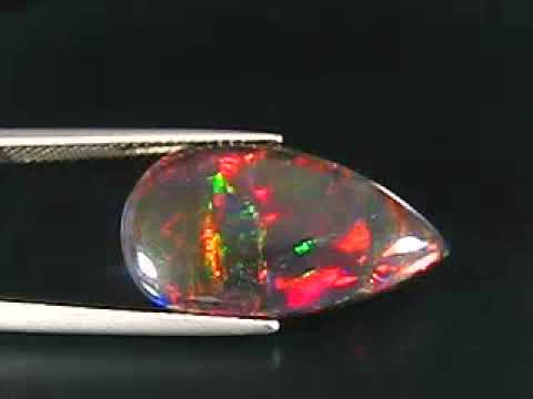 This is a huge opal. It exhibits a strong block pattern that flashes in wide panels on the top, with smoldering flashing over its bottom. Its play of color is set against a silky black body, enhancing their color palette. This opal measures an impressive 23.2mm x 12.7mm x 6.4mm, and was sourced from Welo, Ethiopia. Heated.