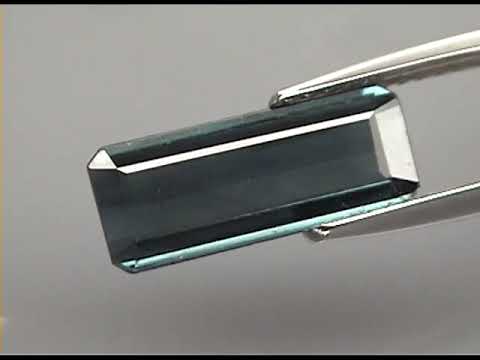 This superb natural tourmaline exhibits full color saturation with a dark tone, silky luster, and rich london blue hue. The combination of its elongated emerald cut, VS clarity, and arrow straight faceting makes this gemstone a natural choice for an elegant setting. It measures an impressive 14mm x 5.5mm x 2.7mm, and is unheated. Sourced from Mozambique.
