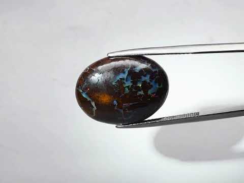 This is an amazing example of pure boulder opal! It has a mix of white and blue opal that runs across its surface like breaking lightning, accented with pops of electric green and indigo. Measuring 21.2mm x 15.7mm x 6.4mm this cabochon cut is perfect for setting. Sourced from Queensland, Australia. Untreated!