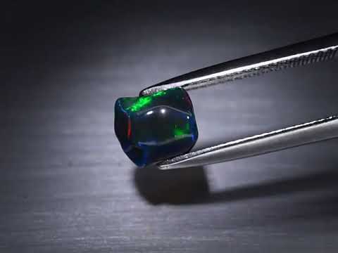 This is pure black Welo opal, and it is gorgeous. The dark color combined with floral flashing in blues and greens with touches of golds and reds makes this piece one of a kind! It has great size, measuring 8mm x 6.5mm x 5.3mm, and was sourced from Ethiopia. Smoked.