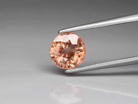 This high quality gem was cut from pure African zircon, and is all natural with no treatments. Its champagne hue has salmon in its undertone that really comes through in its glittering flashing, lightening its color palette. Measuring 7.8mm x 5.3mm, it has great size, and is covered by a glistening superior luster.