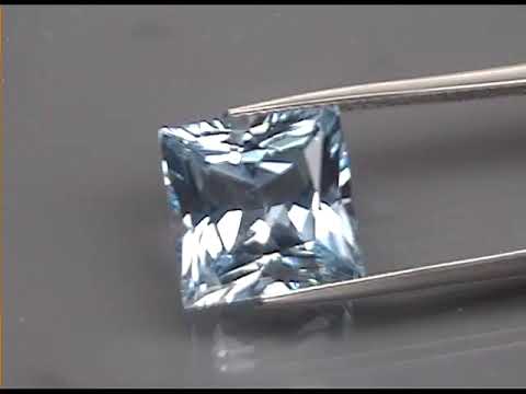 Rolling flashing dances its way throughout this topaz, and is enhanced by the eye clarity and a shimmering superior luster. Its baby blue hue dazzles within this brilliant display and mixes with beautiful platinum highlights. This piece measures 11.2mm x 11.2mm x 7.3mm. Sourced from Brazil.