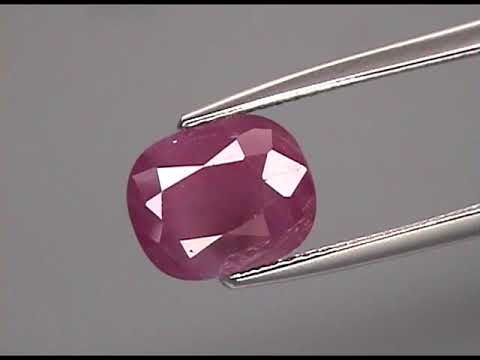 This gem was cut from pure ruby sourced from Winza, Tanzania, and has received no treatments. Its gorgeous red hue is tempered with violet giving it beautiful depth, and its superior luster glistens off of each facet. It measures 8.7mm x 7.2mm x 5.1mm, and has a Mohs hardness rating of 9 out of 10.