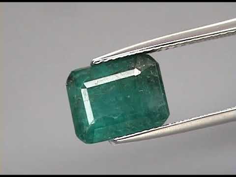 This is a substantial emerald. It has fantastic size, measuring 10.3mm x 8.0mm x 5.2mm, and a rich green hue that glows when held to light. It has a classic emerald cut, with a smooth high luster finish, and a smokey translucency that enhances its color palette. Sourced from Colombia. Oiled only.