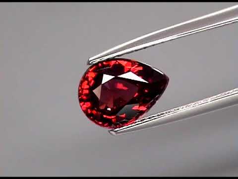This garnet is a cut above the rest. Its color is rich and fluid, presenting a cherry red hue with a violet undertone and strong saturation. The combination of its tight faceting and superior luster create a twinkling effect that is accented by rolling pops of vibrant cherry red flashing. And this visually beautiful piece is topped off with natural eye clarity. Measuring 9mm x 6.7mm x 4.5mm, it's not too big but definitely not too small making it perfect for setting. And with a Mohs hardness rating of 7-7.5 out of 10 this gemstone is ideal for everyday wear. Sourced from Mozambique. No treatments!