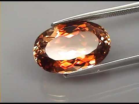 Measuring 15.7mm x 10.3mm x 7.7mm with a Mohs hardness rating of 8 out of 10, this high fire topaz is perfect for setting and everyday wear. Now to the good stuff. The vibrant color of this piece rolls through it in a glittering mix of vibrant oranges, rich ambers and delicate champagnes with flashing that sparkles and pops through pristine VS clarity. Sourced from Brazil.