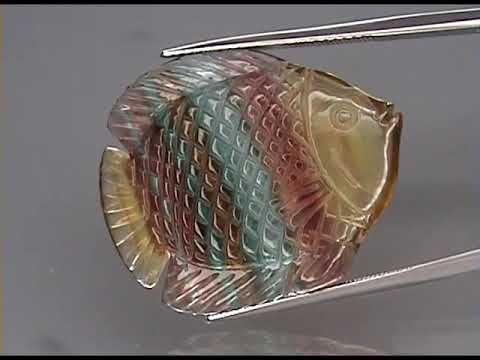 Don't miss this amazing piece. The scales and fins are polished to give them a glistening appearance while the light streams through its translucent body. The violet hue moves to bright green giving it a unique color palette. It measures an impressive 30mm x 24.2mm x 6.2mm, and was sourced from Brazil. Untreated.