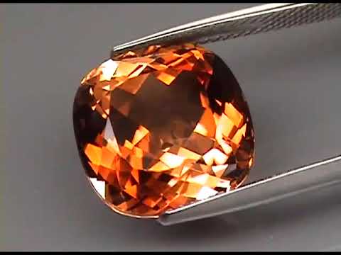 The color of this eye clean piece is simply amazing. It has vibrant color saturation, with a well defined palette that moves from rich whiskey red to amber under a glistening liquid luster. It has a classic cushion shape with overlapping facets that create brilliant non stop flashing. This gem has fantastic size, measuring 12.9mm x 12.2mm x 8.7mm, and a Mohs hardness rating of 8 out of 10. Sourced from Brazil.