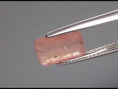 This eye catching tourmaline exhibits a pale pink hue with brilliant saturation, and glitters under its premium luster. This example was sourced fom Mozambique, Africa, which is considered one of the most important countries in that region for precious gems. It measures 10.6mm x 6.8mm x 4mm, and features a translucent body with petite flashing.