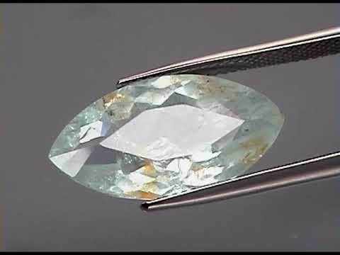 This is a phenominal gemstone. Its tightly faceted marquis cut creates a brilliant halo of glittering flashing giving with a superior luster. The hue of this aquamarine is bright sea blue with a slight green undertone coupled with unique rusty inclusions. It measures an impressive 20.6mm x 11mm x 6.8mm, and is unheated. Sourced from Brazil.