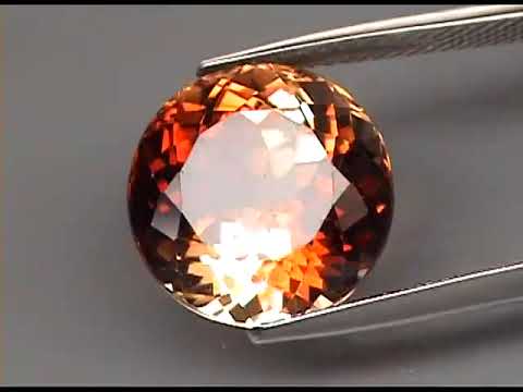 The well blended color of this unique topaz moves from rich amber to delicate champagne and back again. Its swirling color saturation creates crisp flashing in rich red ambers mixed with glittering golds. Measuring 12.5mm x 8.8mm it has incredible size, and its superior luster and eye clarity add to its showroom display.