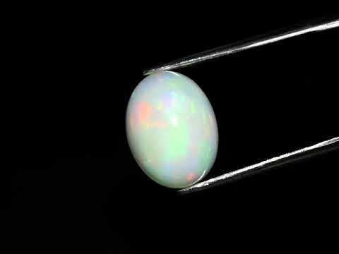 This beautiful opal has a snow white hue with misty clarity that enhances its color palette, creating the perfect background for its smoldering floral pattern. Its play of color is delicate, moving through shift of reds, blues and oranges with yellows and greens suspended through its semi-opaque body. Measuring 13mm x 10mm x 7.2mm it has incredible size, and is covered by a glistening pearlescent luster. Sourced from Welo, Ethiopia. Unheated.