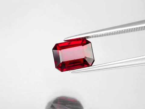 This dazzling gem presents exquisite color, showing a rich chianti hue with strong saturation through VS clarity. It has classic emerald cut that takes full advantage of the spectacular luster that glistens and pops over its smooth cut facets. This garnet was sourced from Mozambique, and has good size measuring 7.8mm x 6mm x 4.6mm. Untreated!