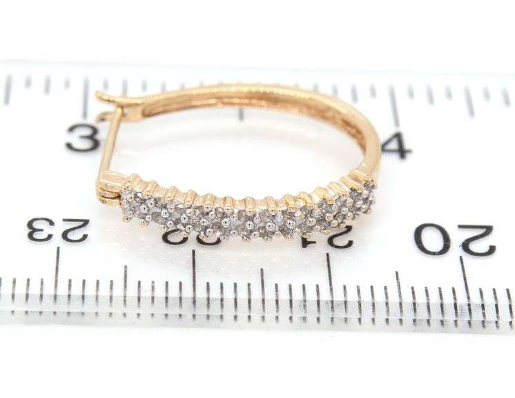 10kt Yellow gold approximate 0.25ctw 2 row diamond hoop earrings. Total weight of earrings is 2.80 grams.