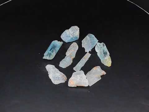 Ladies and gentlemen, what we have here are 9 pieces of uncut, untreated Brazilian aquamarine with a total weight of 41.66 carats! You can see a beautiful rich blue color suspended in some, and frosty white in others. Measuring from 14x11.4mm to 23x7.8mm, this versatile collection is ready to wire, use in rough stone jewelry, or simply add to your collection. There is no wrong answer with these all natural gems!