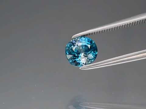 Cut from pure Cambodian zircon, this gem possess a tremendous French blue color palette with vivid saturation and SI clarity. Every facet of this piece shimmers under its diamond grade luster, and is accented by glittering pops of confetti flashing. It measures 6mm x 5.7mm x 4mm. Gentle heat only.