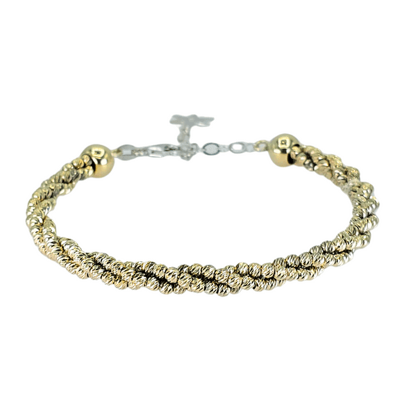 14k (585) White and Yellow Gold Diamond Cut Gold Bangle / Bracelet, Adjustable