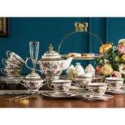 A Fine Bone China Tea Set designed to bring a touch of British elegance. This 21-piece set includes everything you need for a sophisticated tea party: a teapot, a sugar bowl, a creamer pitcher, 6 tea cups, 6 matching saucers, and 6 spoons. Made from premium bone china containing over 36% bone meal, this tea set is thinner yet tougher than ordinary ceramics, ensuring durability and resistance to cracks while maintaining a delicate feel.