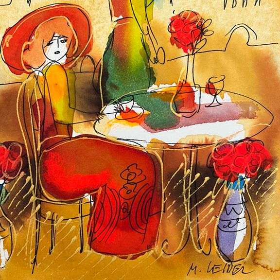 This is an original mixed media watercolor painting on paper by Moshe Leider. Hand signed by the artist, this piece comes custom framed and includes a Letter of Authenticity. Measures approximately 15" x 13.5" (frame), 8" x 6.5" (image).