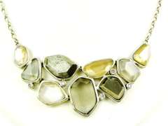 Silpada sterling chain necklace with a 3 inch free-form centerpiece of 9 stones - mother of pearl, pyrite, quartz and bezel set CZ's. Hallmarked & hang tag. 18".