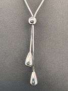 LADIES BRAND NEW 14K WHITE GOLD BEAD BALL V NECKLACE. IT IS 17 INCHES LONG. HAS A LOBSTER CLAW LOCK. STAMPED 14K WITH A WEIGHT OF 4.6 GRAMS. BRAND NEW -NEVER WORN.