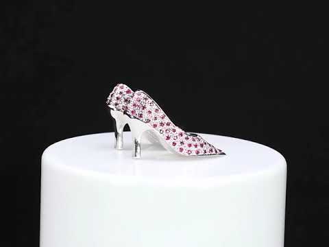 Wow! Just look at those shoes! They have a total of 184 rubies with matched violet pink hues and twinkling lusters hand set in a classic pair of pumps. All crafted in sterling silver! The attention to detail in this set is fantastic, featuring high polished soles and textured uppers, and the gems practically glow in sunlight. The rubies in this set were sourced from Mozambique, are heated only, and measure approximately 1.5mm each.