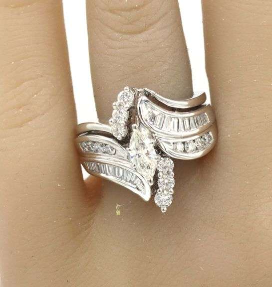 14kt White gold approximate 0.50ctw H, SI1 marquise with 1ctw round brilliant cut and baguette diamond bridal set. The total weight of the ring is 12.13 grams. Ring size 7". Comes with cert.