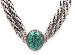 Heavy chunky vintage 925 sterling silver oval turquoise necklace