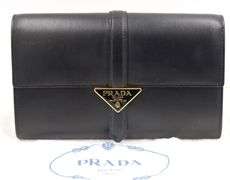 Authentic pre-owned Prada Rectangular Logo Clutch calf leather Bag. Zip pocket. Fold over flap closure. Made in Italy. Comes with dust bag. 8.25"x5".