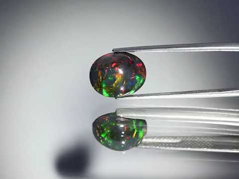 Wow! What an amazing black opal! The photos and video don't even come close to the actual play of color suspended through this opal. In hand this piece exhibits a multi-color multi-pattern full cover explosion of color in both bright and low lighting. The colors ebb and flow in torrents of both rich and vibrant greens, reds, oranges, and yellows with deep cobalt blue and turquoise accents under a glistening liquid luster. You've got elements of floral, block, and harlequin patterns all swirling around each other juxtaposed by a sea of silky silky blackness that enhances these patterns and really making them pop. And since opals have less density than other gemstones, its 3 carat weight creates a substantial 11.7mm x 9mm x 6mm size! Sourced from Ethiopia. Smoked.