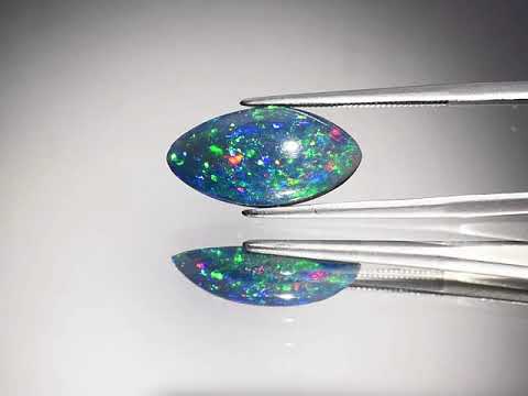 Get ready to light up your jewelry with full body fairy fire when this high fire example Its elegant marquise cut is is filled with play of color that sparkles in rainbow colors from end to end in a non-stop display. Electric greens flows into rich cobalt blues with touches of turquoise when they meet accented with red and gold highlights. And the whole display is captures under a beautifully polished liquid luster and set against its silky black hue. This opal has amazing size measuring 17.5mm x 9mm x 4.9mm, and although it has full saturation, its actually translucent! You can see through it when you hold it to the light! Sourced from Ethiopia. Smoked.