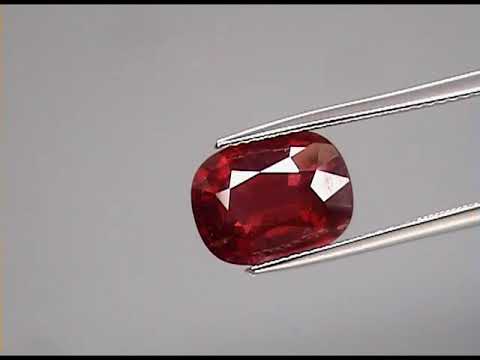 The depth of color in this piece is amazing, showing a strong red body color accented with rich violet undertones creating its exotic plum red hue. The smoky clarity of this garnet enhances its palette, diffusing the light while its superior luster casts violet shadows around its edges. It has incredible size, measuring 11.9mm x 9mm x 6mm, and is fully natural with no treatments. Sourced from Mozambique.