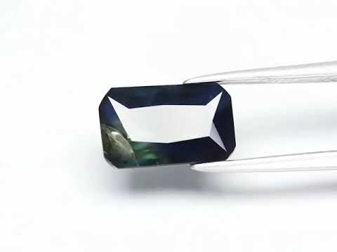 Some people like a big, loud party. But some people, not all people, but some people enjoy a quiet, intimate gathering. And that's what we have here. An Australian party sapphire with just a touch of color, adding a little flare to its elegance. A glass of chardonnay with some light jazz. We start with a lush, opaque, blue black hue that moves into semi-translucent navy blue accented with fully translucent yellow creating a dramatic display. This is topped with a glossy superior luster that gives it a dynamic reflective quality, creating light and movement across its surface in sharp angles from its scissor cut top. It is gorgeous. The faceting of this sapphire has magnificent symmetry, and it measures 10mm x 6.3mm x 3.5mm with a Mohs hardness of 9 out of 10 making it perfect for setting. This Australian born sapphire was heated only, with no dyes or fillers. Don't miss this one of a kind sapphire!