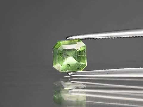 This tsavorite has a unique color that really pops! The understated grass green of this all natural gem is simply gorgeous, and is complimented by bright linear flashing. It measures 5.5mm x 5.2mm x 3mm and is untreated. Only 10 percent of the tsavorite mined in the world is above 1 carat, with only 2.5 percent being over 2 carats. Made famous by Tiffany and Co., this very beautiful gem is held in high regard by collectors and connoisseurs and is very rare. Sourced from Tanzania.