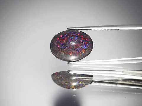 Straight from the fields of Andamooka in southern Australia, we present this amazing example of Andamooka opal! It has incredible full bodied play of color that glitters and pops in reds and blues with touches of orange and yellow in a tightly clustered fairy fire pattern. The rich body color of this piece provides the perfect backdrop for its play of color, creating a light to dark juxtaposition, and amplifying its color palette. This large collectors opal measures measures an impressive 15.5mm x 11.5mm x 5.3mm, and is untreated.