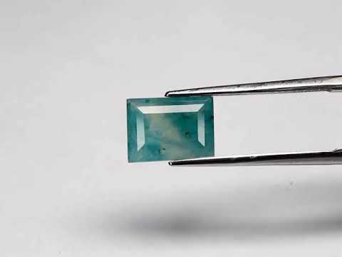 The color of this gem type is rarely found in nature, and out of these rare gemstones, this one is unique. It presents a bi-color blue green to frosted green hue with swirling color saturation under a glistening luster. This scarce gem type is known by collectors and connoisseurs as one of the rarest in the world, and is highly sought after. It measures 10mm x 7.3mm x 3.7mm, and is untreated.