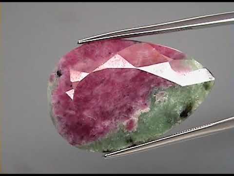 Don't miss this fantastic example of this incredibly popular gem type! Over millions of years, these two gems developed together to become one substantial piece. Its front dominated by strong violet red ruby touched with zoisite, while its back displays the opposite, revealing cheetah patterned zoisite with a touch of ruby. The display is gorgeous, and captured under a well polished glistening luster. The size of this gem is amazing, measuring a whopping 30mm x 19.6mm x 11.4mm, and its body is fully opaque ensuring no deviations in its color palette. Sourced from Africa. Untreated!!!