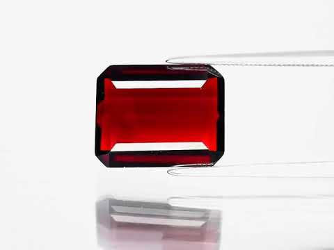 Don't let this investment grade gemstone slip through your fingers! Presented here is a breathtaking example of pure Namibian spessartite garnet. Hand crafted from premium rough, it exhibits a rich crimson red hue with just a hint of amber in its undertone that doesn't detract from its decadent color palette, accented by vibrant pops of cherry red linear flashing. The emerald cut of this garnet shows classic lines with fantastic symmetry, and crisp wide faceting that makes full use of the superior luster that casts deep shadows through its impeccable VVS clarity. It measures 13.8mm x 11mm x 4.5mm giving it a low profile making it perfect for setting and wearing without the fear of snagging on clothing that plagues most larger gemstones. But even with its slender height, the strong saturation of this garnet ensures a stable palette with no loss of color or color deviation. Spessartite garnets of this color and quality easily sell for over $200 a carat in retail settings, with boutique prices reaching well above that. Sourced from Namibia. UNTREATED!!!!