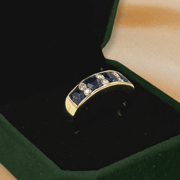 Yellow Gold Oval Blue Sapphire and Diamond Band - U.S. Auction Brokers