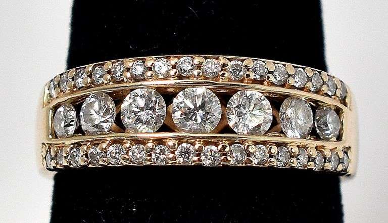 CERTIFIED LADIES 14K YELLOW AND WHITE GOLD DIAMOND RING. IT HAS ALL NATURAL ROUND BRILLIANT CUT DIAMONDS WITH A TOTAL WEIGHT OF 0.65 CARAT. DIAMONDS ARE F-G IN COLOR AND VS1-SI1 IN CLARITY. GOLD WEIGHT IS 5.2 GRAMS. STAMPED 14K. RING IS SIZE 7-CAN EASILY GET RESIZED BY YOUR LOCAL JEWELER. IT IS 9.8MM WIDE. CAN BE USED AS A WEDDING BAND OR ANNIVERSARY RING. IT IS IN MINT CONDITION. DIAMONDS ARE 100% NATURAL AND OF HIGH QUALITY , ALL SET IN BEZEL SETTING. CERTIFIED BY C.G.L, CERTIFICATE #2735718578001157. CAN BE VERIFIED AT CGL-LABS.COM