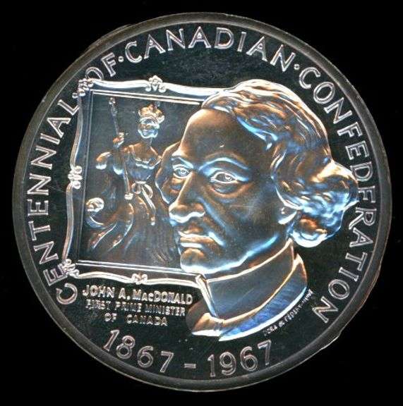 Gorgeous deep prooflike surfaces on this gorgeous large silver medal commemorating the 1967 Centennial Anniversary of the 1867 Confederation of Canada. Consists of 1.32 Troy Ounces of .999 Fine Silver.